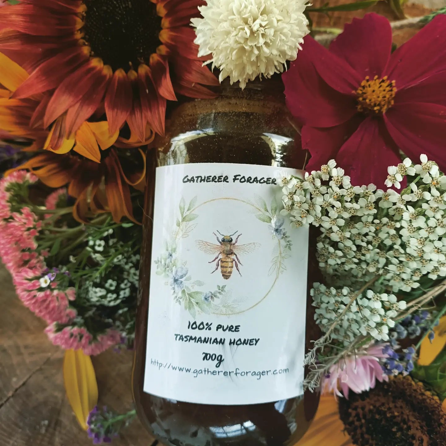 Our raw mixed blossom honey comes direct from our hives based on our permaculture farm and bee sanctuary in Southern Tasmania. Every year we are planting out more forage plants to ensure the bees have everything they need here for a varied diet.